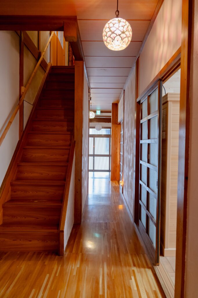 各部屋の内装は漆喰壁の和風な仕上がりに。また広々した浴室、リビング、キッチンを設備。大人数でも窮屈感を感じさせない空間。外にはBBQをできるスペースがあり、貸し出しもあります。