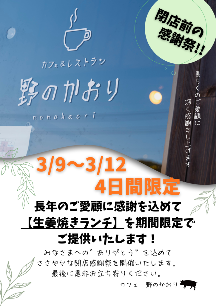 閉店に伴い3月9日~12日の4日間限定で、特別ランチをお楽しみいただけます。